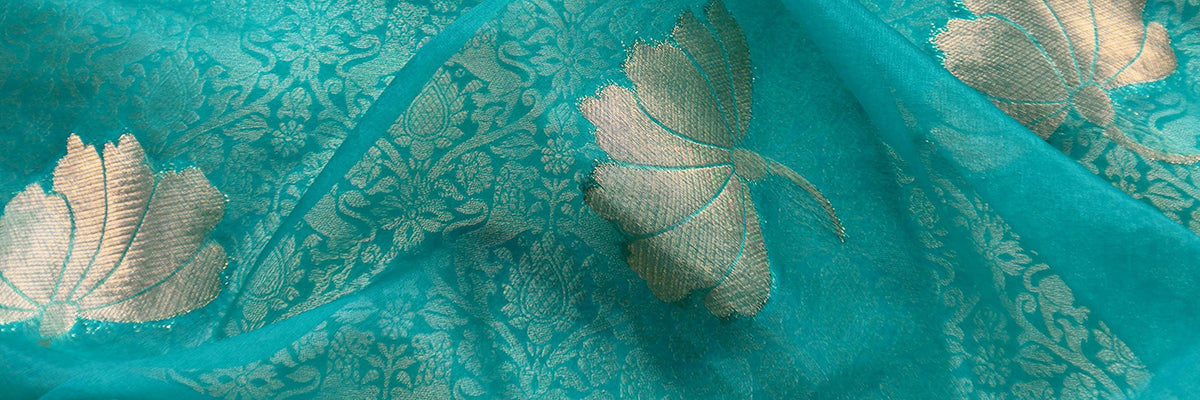 Modern Elegance 2025 Handloom Organza Silk Suit Fabric with Gold embellishments