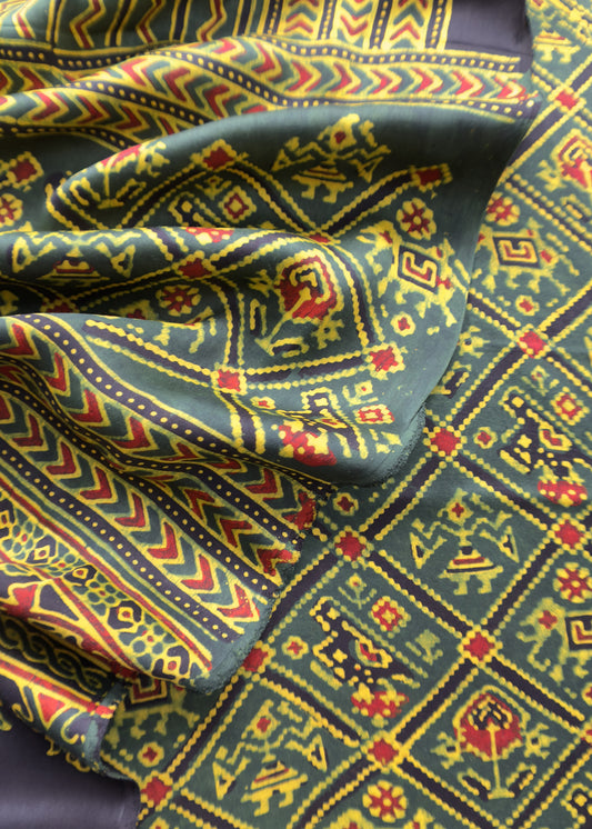 Green Ajrakh Hand Block Unstitched Suit In Pure Modal