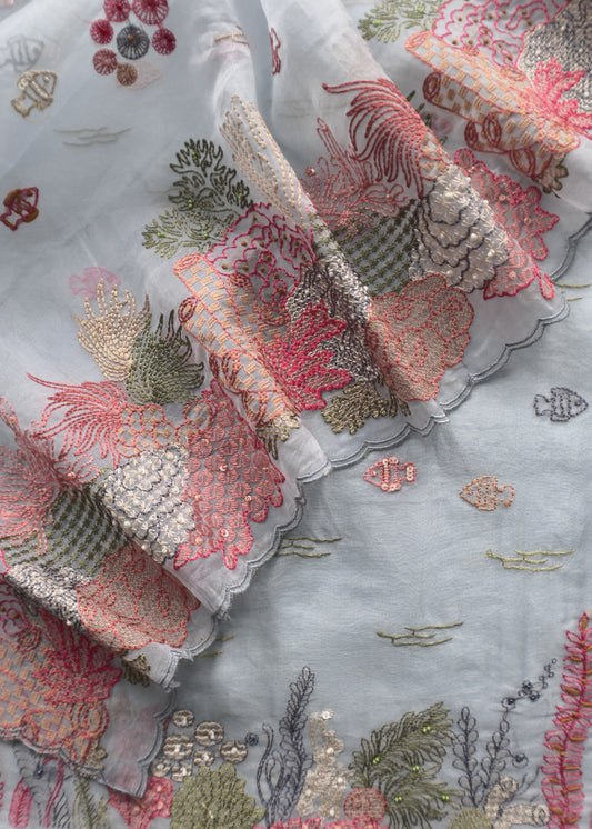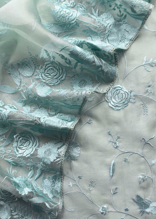 Powder Blue Pure Organza Suit Fabric With Lake View Embroidery