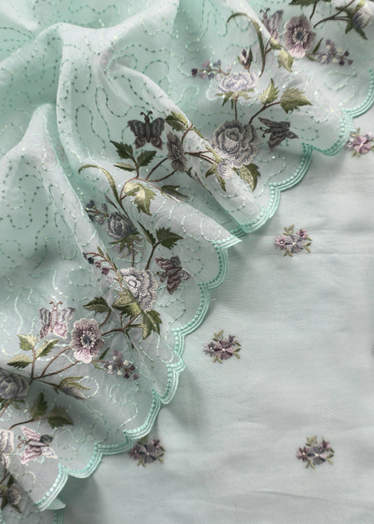 Powder Blue Pure Organza unstitched Suit With Resham Embroidery