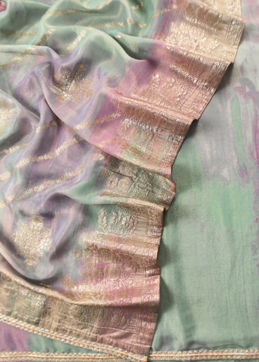 Pure Crushed Tissue-Silk Abstract Print Unstitched Dupatta-suit