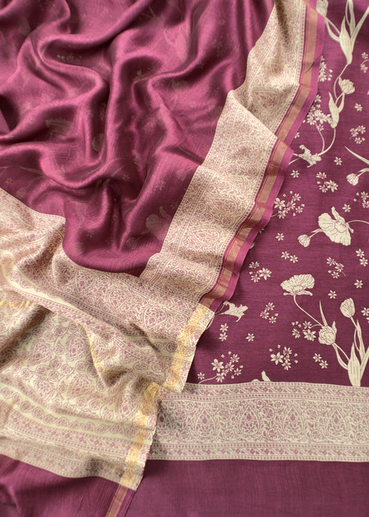 Pure Maheshwari Unstitched suit Floral Motif Dupatta