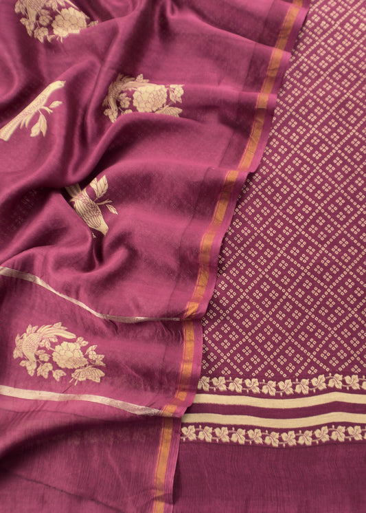 Pure Maheshwari Silk Unstitched Suit Bandhani Dupatta
