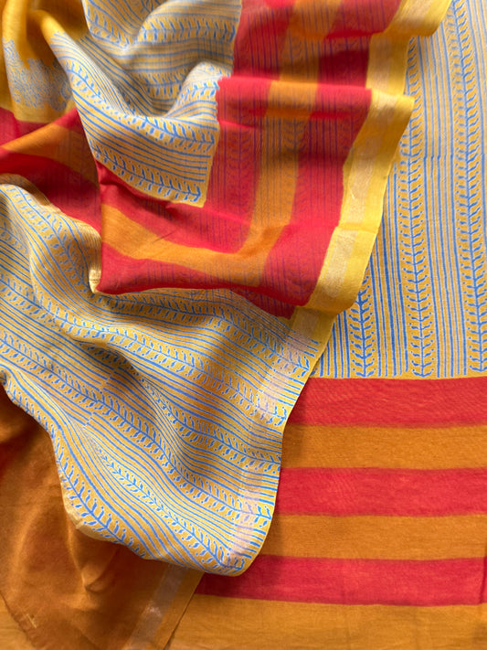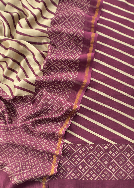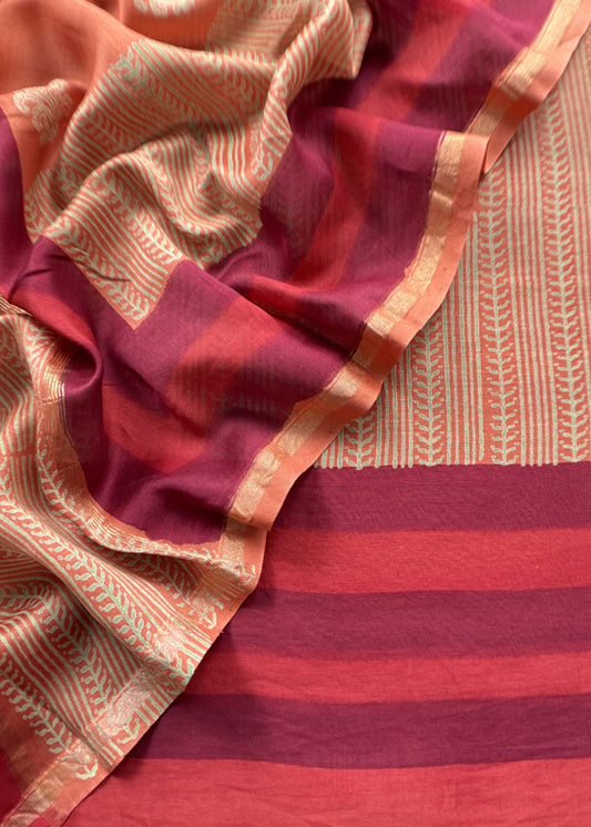 Pure Maheshwari Unstitched Suit Vertical Print Dupatta