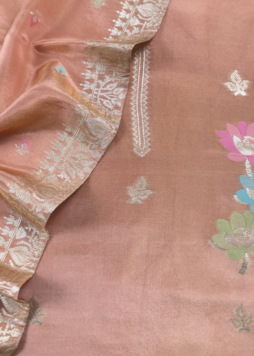 Pure Handwoven Tissue Suit Silk With Meenakari Weaving