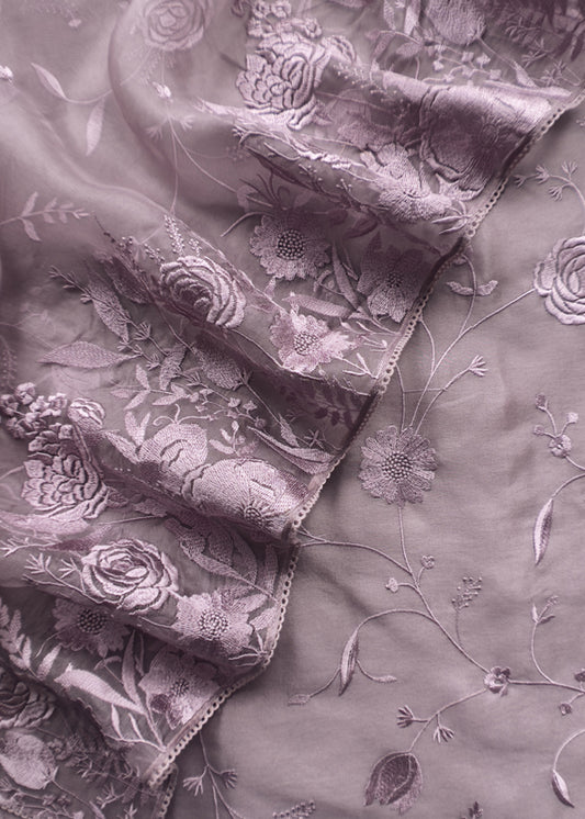 Purple Kalasheel Luxe Organza Suit with Pitta Hand Work
