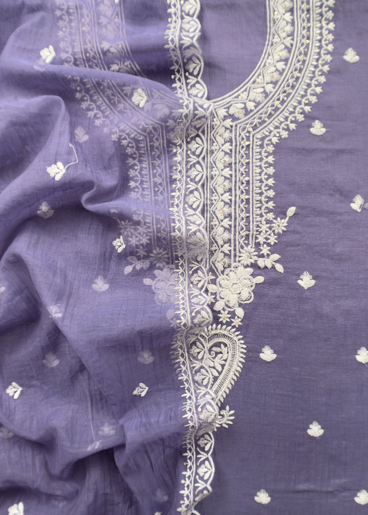 Purple Mul Cotton Suit In Lakhnavi Chikankari Embroidery