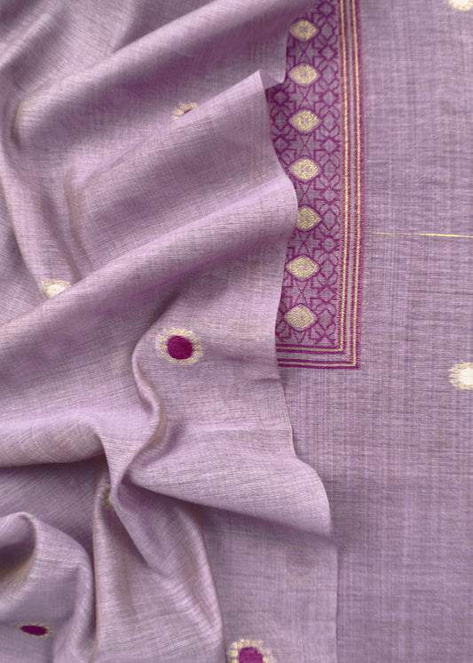 Purple Linen Chanderi Unstitched Suit With Jamdani Weaving