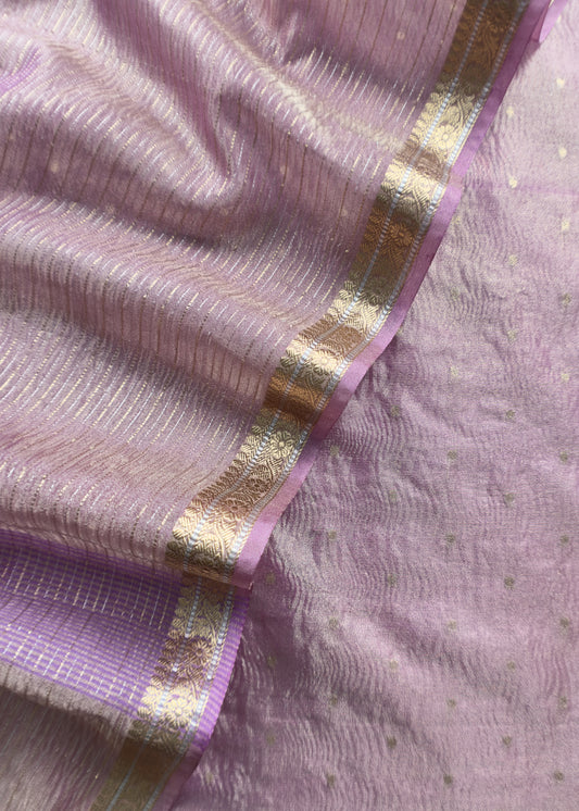 Purple Pure Maheshwari Unstitched Suit With Ekkat Dupatta