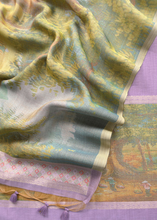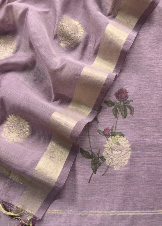 Purple Summer floral Unstitched Suit in Chanderi Blend fabric