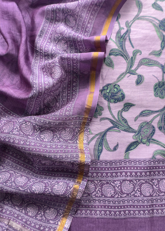 Purple Pure Maheshwari With Traditional Hand Block Print