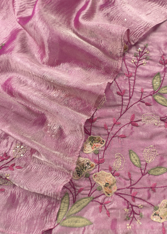 Purple Tissue Silk Suit With Thread Embroidery And Patch Work