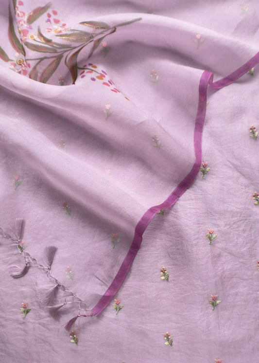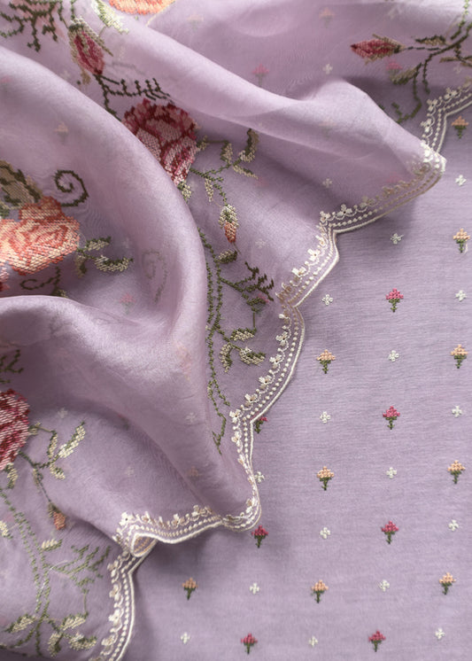 Purple Pure Organza Unstitched Suit In Resham Embroidery