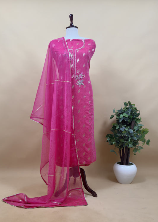 Purple Pure Unstitched Chanderi Jamdani Suit With Dupatta