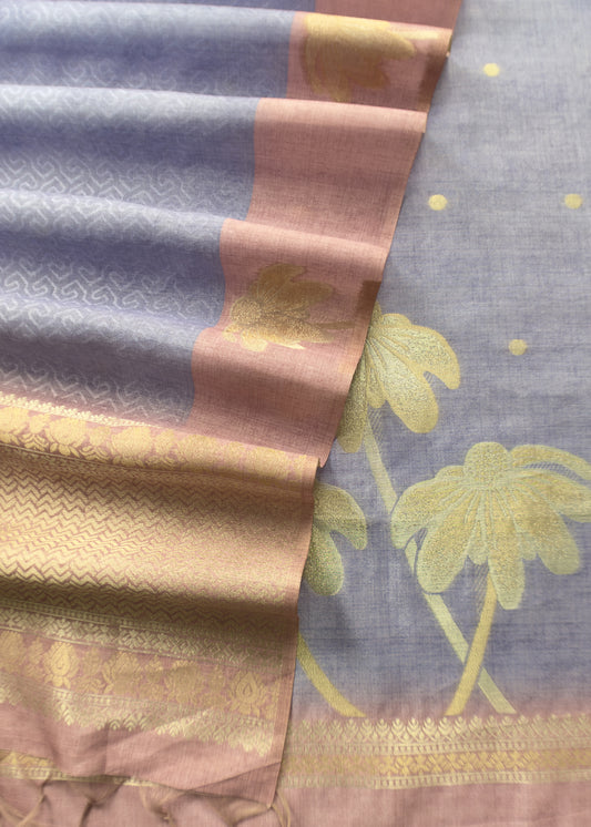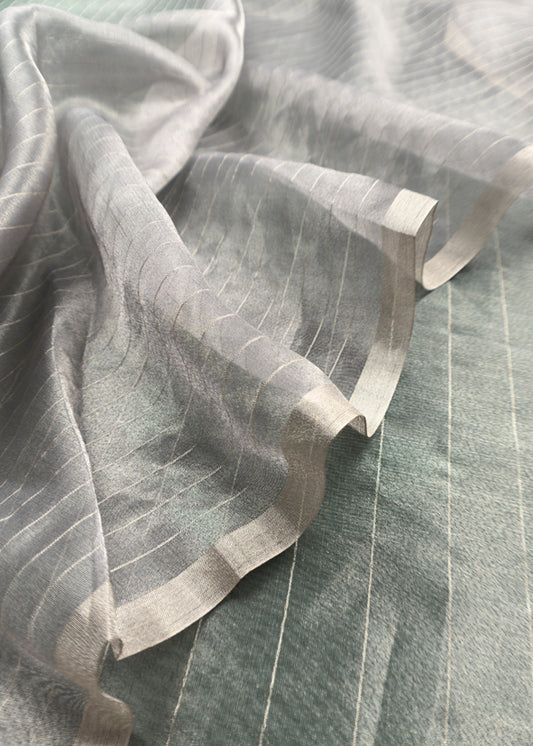 Raspberry Gray Handloom Tissue Silk Suit With Silver Zari Weaves