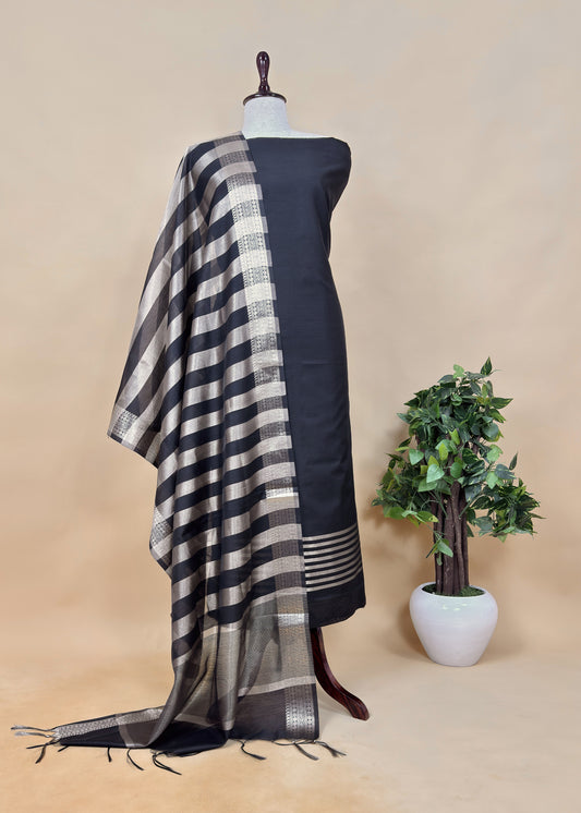 Red And Black Pure Maheshwari Silk Unstitched Suit With Madhubani Dupatta
