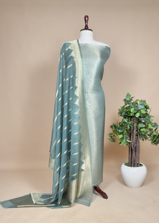 Red Chanderi Unstitched Suit With Gold Zari Jamdani Weaving