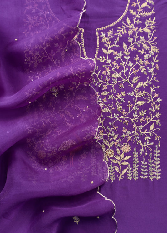 Russian Silk Embroidered Unstitched Suit with contrast Tebby Dupatta