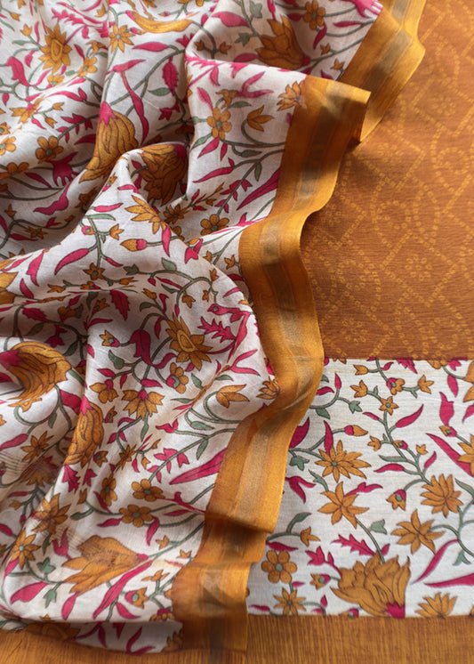 Rust Pure Maheshwari Unstitched Suit With Ekkat Dupatta
