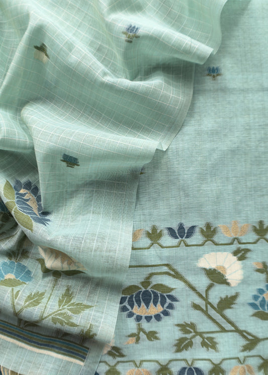 Sky Blue jamdani Woven Unstitched Suit With Paithani Work