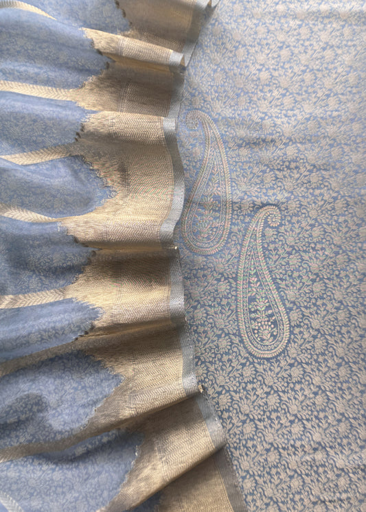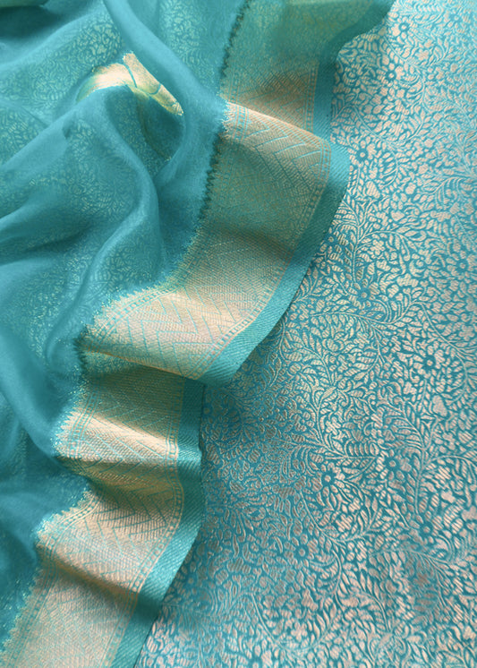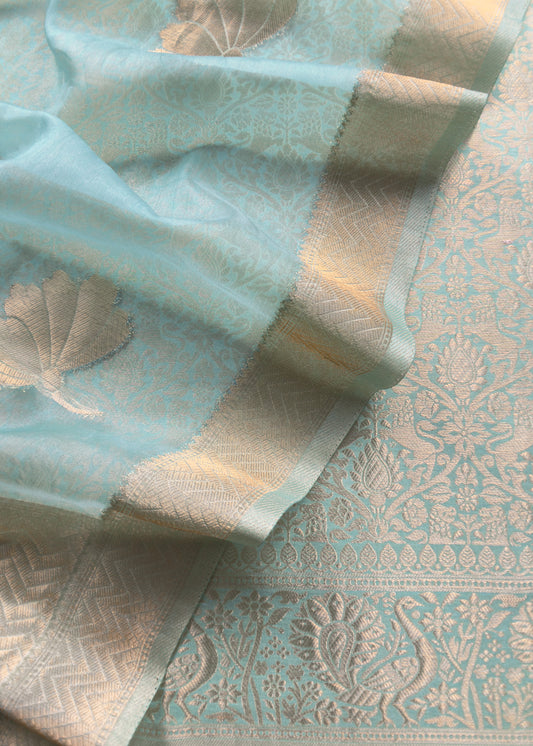 Sky Blue Banarasi Silk Brocade Suit With Organza Dupatta