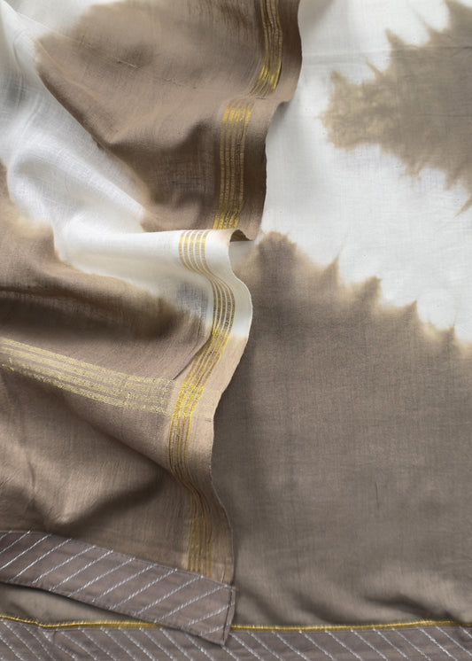 Taupe Naturally-dyed Pure Cotton Suit Set with Shibori Print