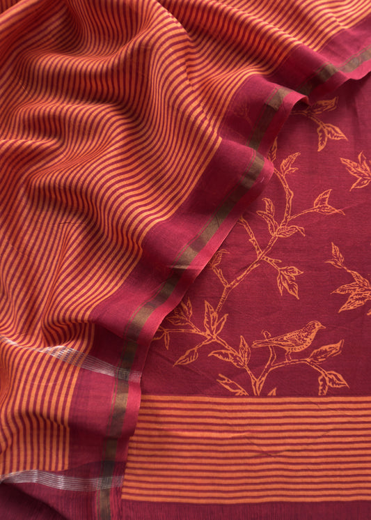 Block Print Maheswari Silk Suit With Orange Dupatta