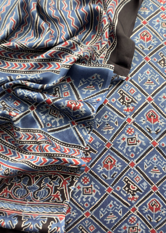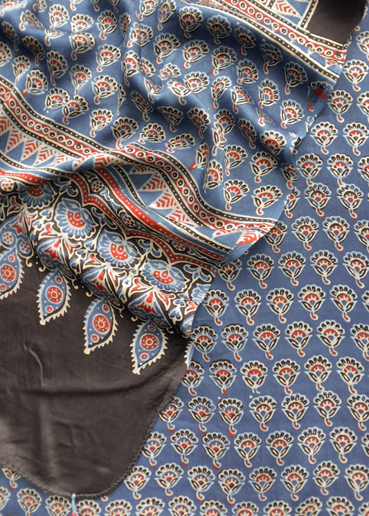 Blue Ajrakh Hand block Unstitched Suit In pure Modaal