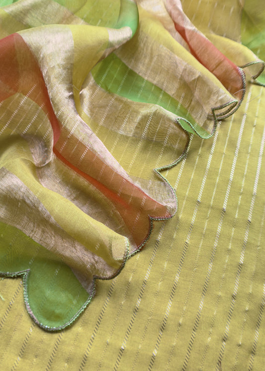 Blingy Apple Green Handloom Silk Kurta With Tissue Silk Double Panel Zari Dupatta