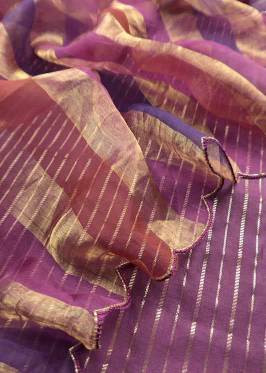 Blingy Wine Handloom Silk Kurta With Tissue Silk Double Panel Zari Dupatta