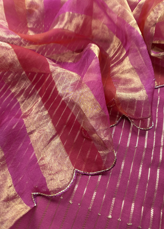 Blingy Pink Handloom Silk Kurta With Tissue Silk Double Panel Zari Dupatta
