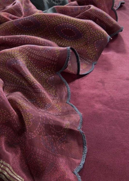 Wild Orchid Pink Kashi Ghat Embroidered Organza Silk Suit fabric