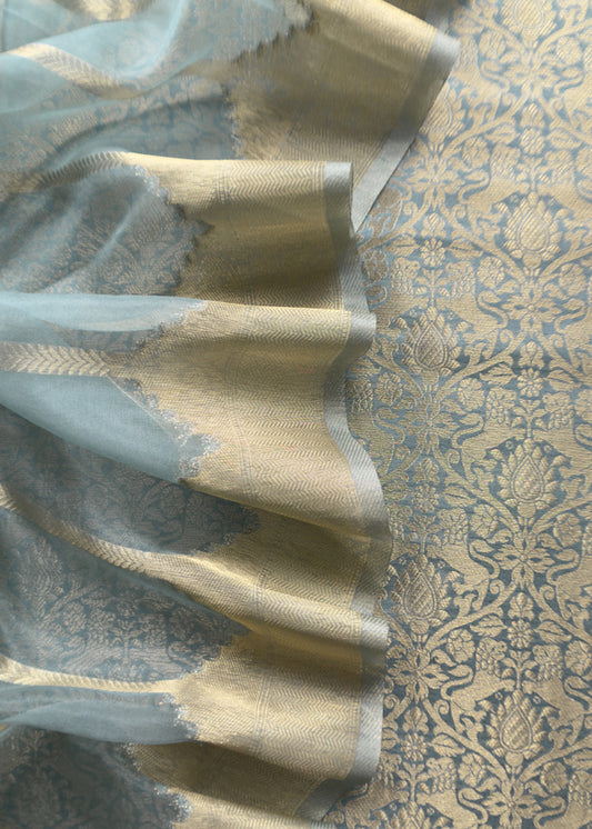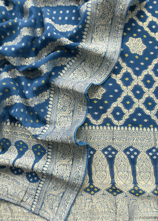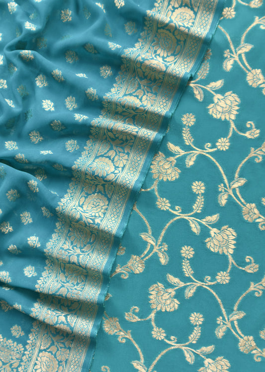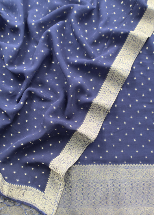 Blue Banarasi khaddi georgette unstitched Dupatta suit