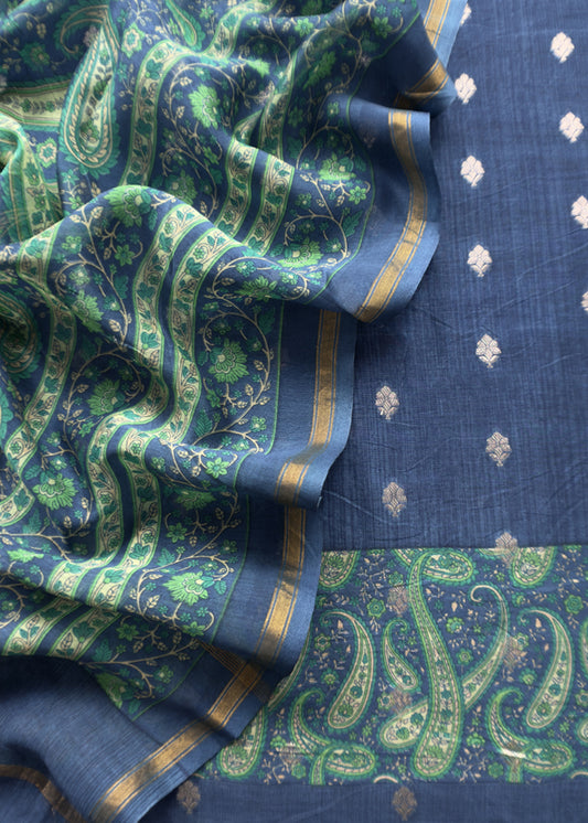 Blue And Green Maheshwari Silk Suit With Banarasi Bootis