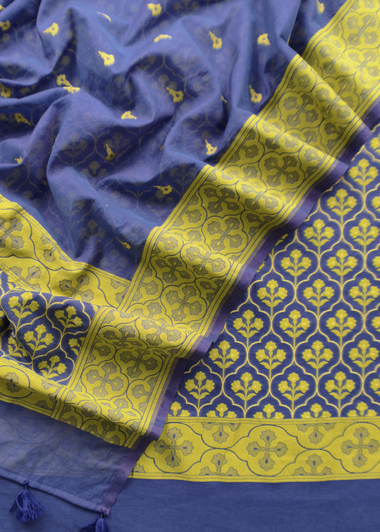 Blue Banarasi Chanderi Handloom Suit Set With Shibori Dupatta