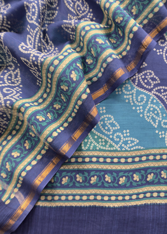 Blue And Purple Bandhani Suit In Maheshwari Silk