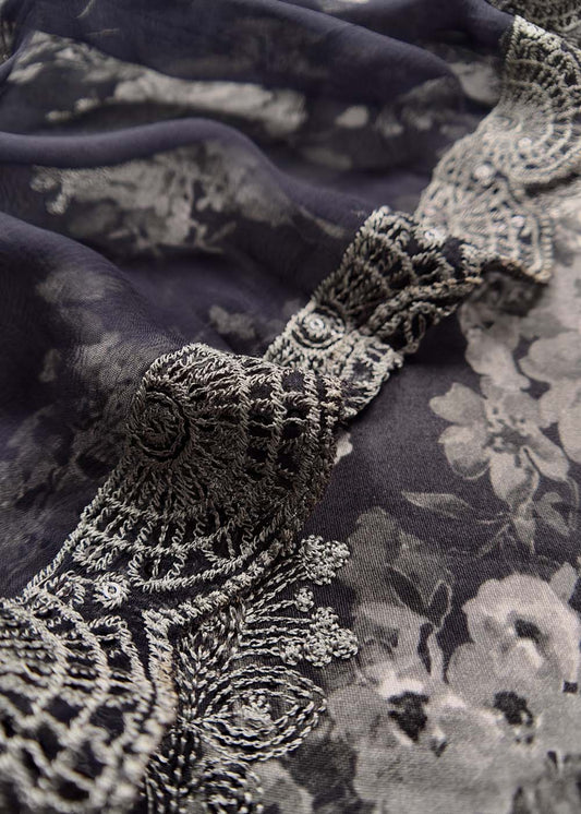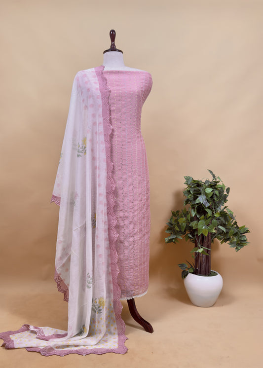 Blue Embroidered Unstitched Mulmul Suit With Scalloped Border