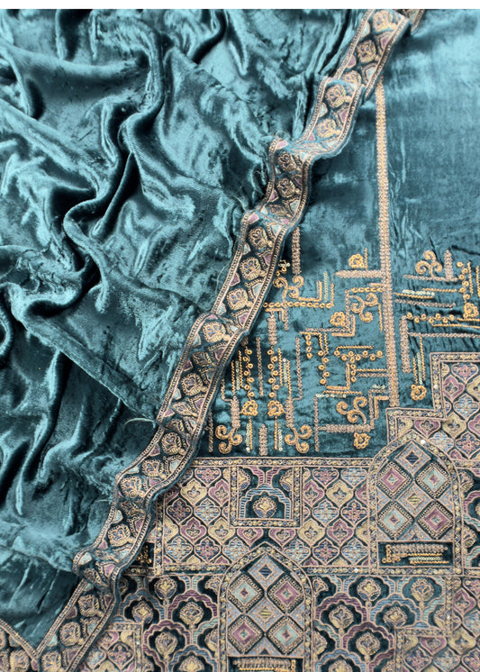 Blue Embroidered Velvet Suit Set