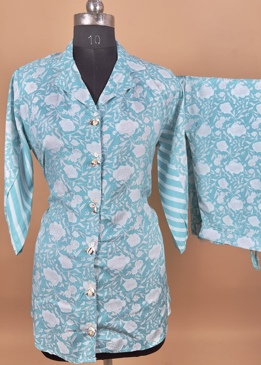 Blue Digital Print Cord-Set In Muslin Fabric