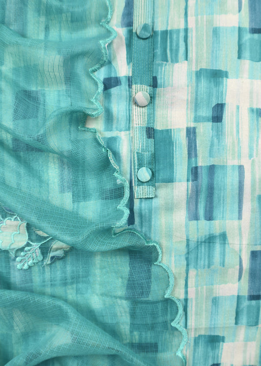 Blue Cotton Chanderi With Kota Doria Dupatta