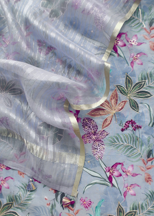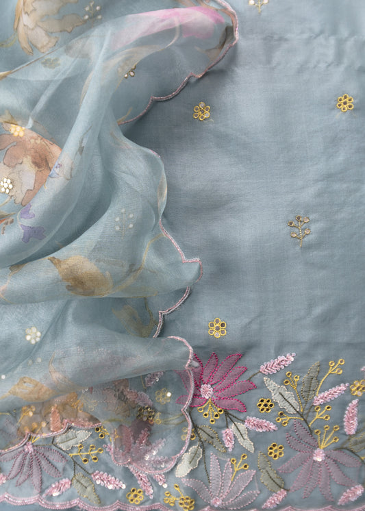 Blue Hand Embroidered organza Silk Suit With Gotta Patti Dupatta