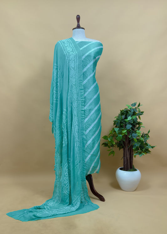 Blue Gajji Silk Suit Contrast Bandhani Dupatta