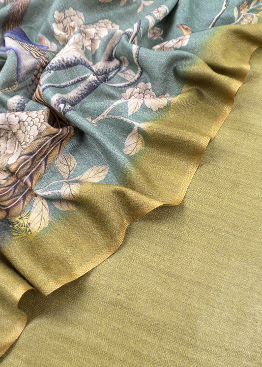 Apple Green Pure Pashmina Unstitched Suits With Kalamkari Dupatta