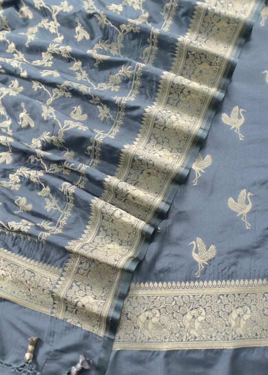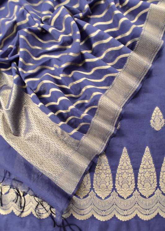 Blue Handloom Banarasi Silk Suit With Zari Weaving