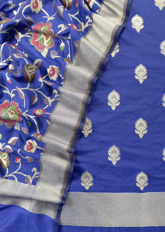 Blue Handloom Banarasi Meenakari Suit In Pure Kora Silk