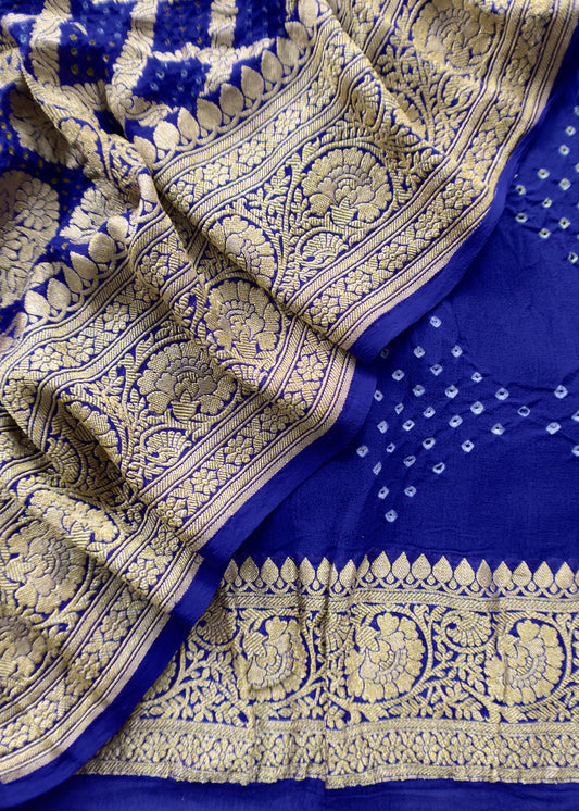 Blue Ombre Premium Georgette Ghatchola Bandhani Dupatta