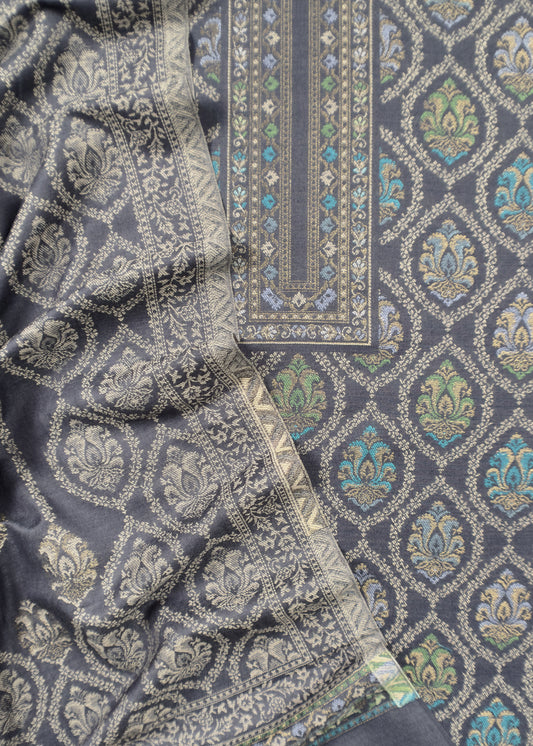 Blue Premium Cotton Silk Suit With Kani Zari Weaving