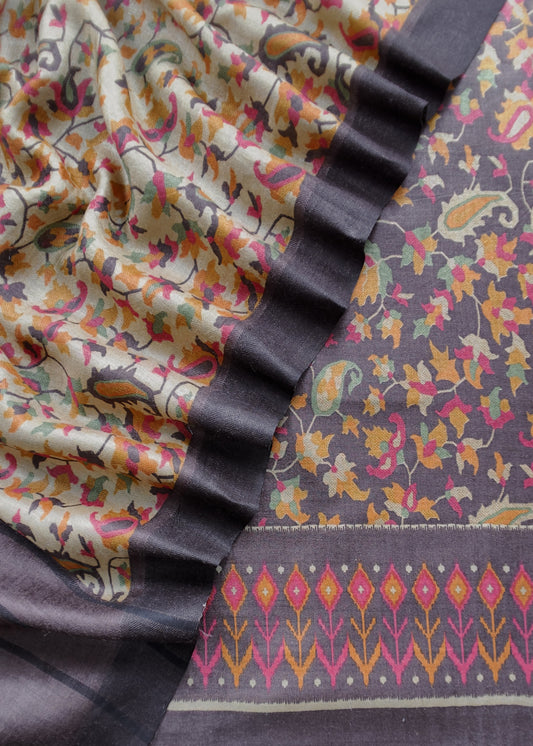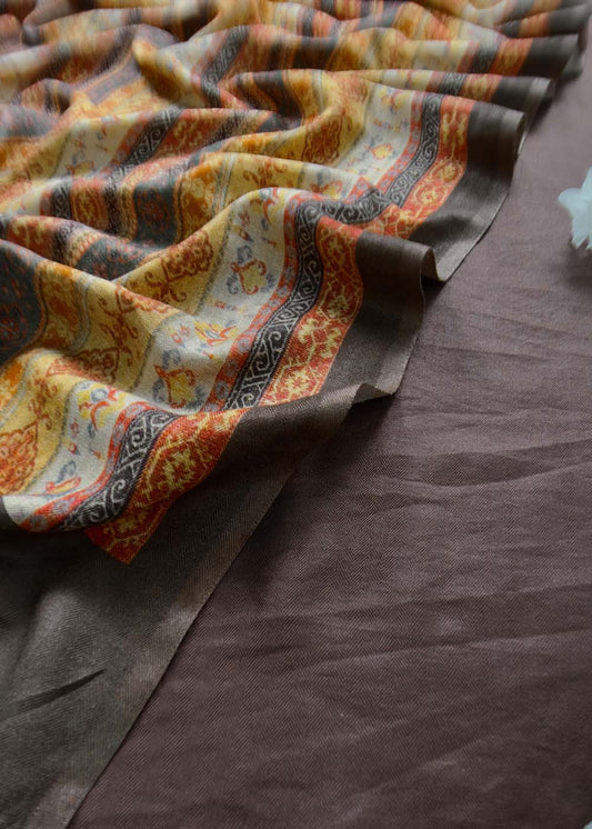 Brown Pure Pashmina Unstitched Dupatta-Suit With Kani Print