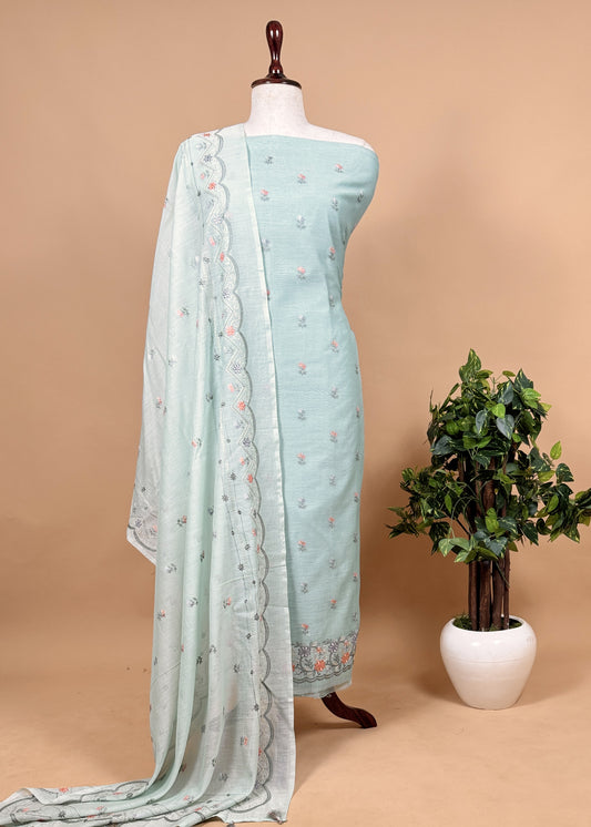 Brown Linen Chanderi Unstitched Suit With Jamdani Weaving