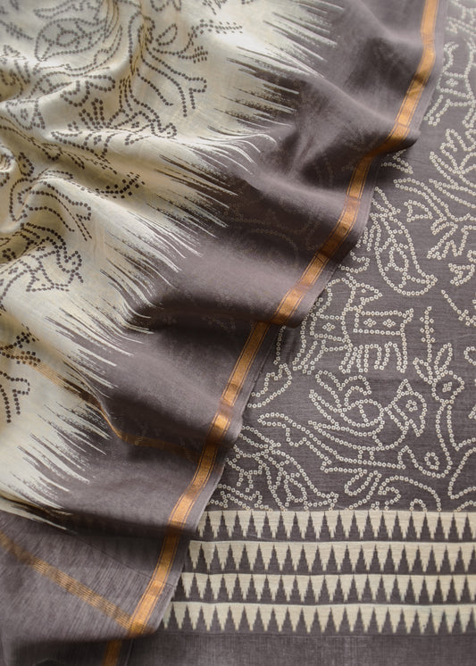 Chikoo Gray Pure Maheshwari Silk Unstitched Suit Bandhani Dupatta